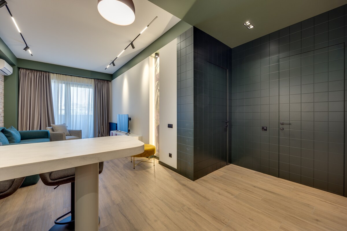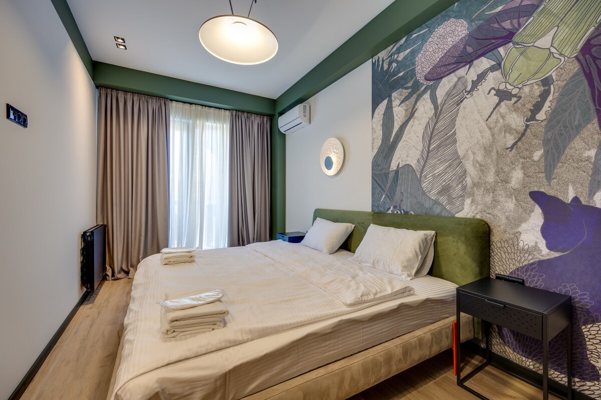 The spaceApartment is equipped with free WiFi, A/C, central heating system, washing machine, hairdryer, microwave, stove top and all necessary kitchenware.