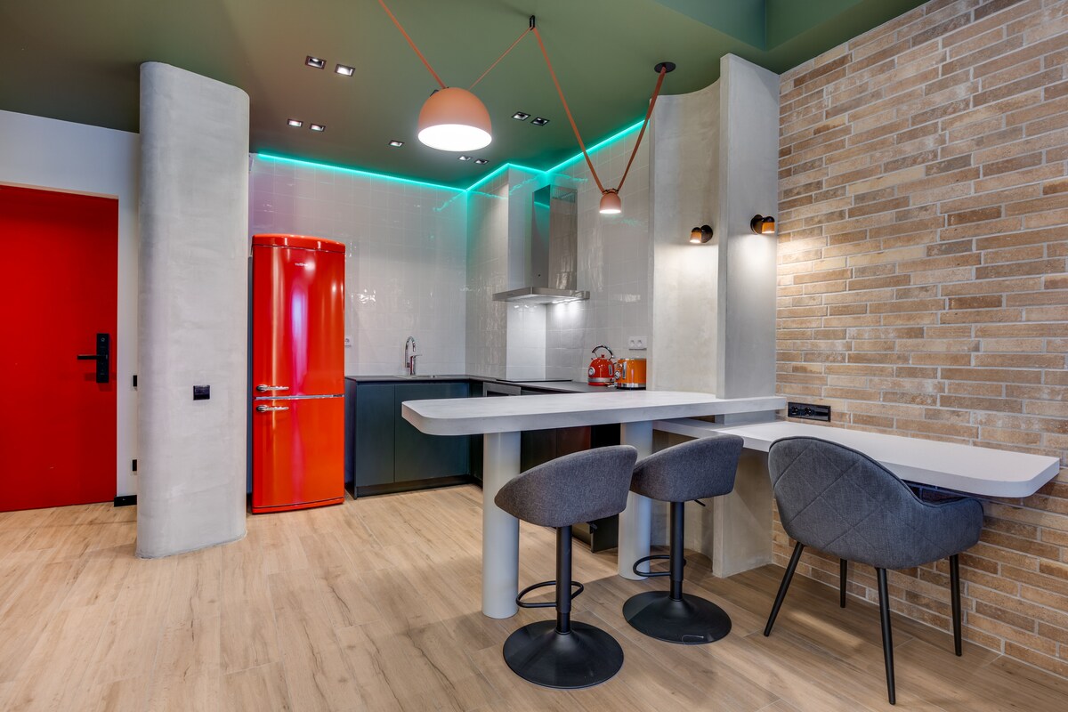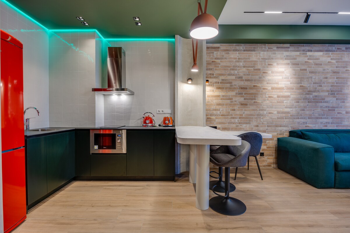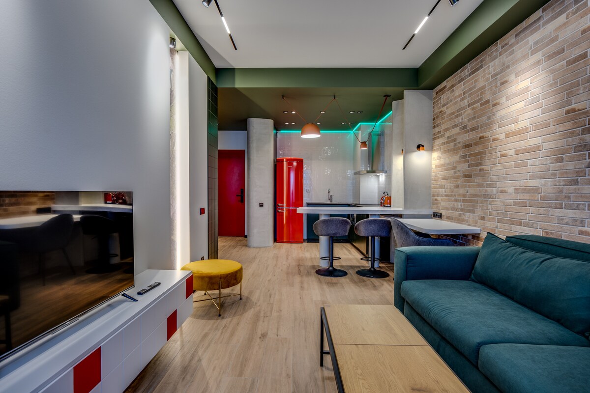 The living space includes 1 bed, 1 bathroom and fully equipped kitchen.