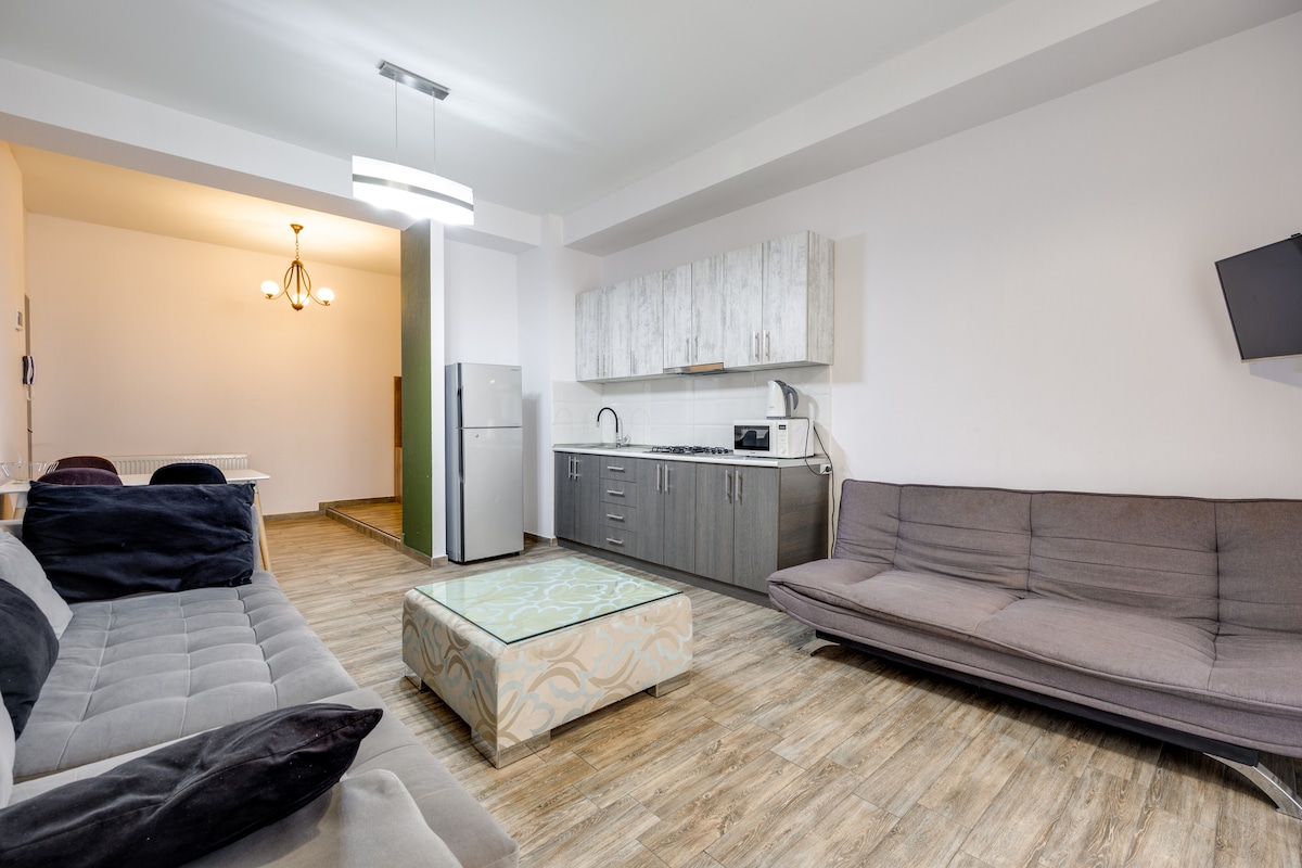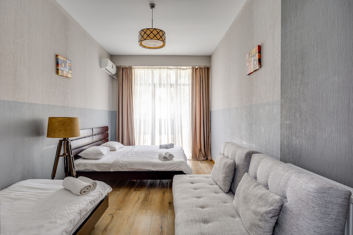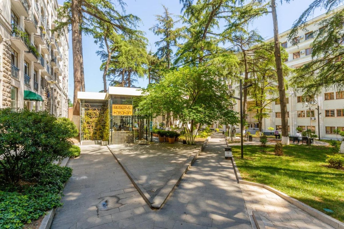 Apartment is located in the heart of the city. Historical places, cafes, bars, museums, theaters and other attractions are all walking distance from the apartment. All the main places, traditional and international kitchens, night clubs, shopping malls are at your service as soon as you step in the street. We are proud to host you in cultural heritage of Tbilisi and make you part of our own history!