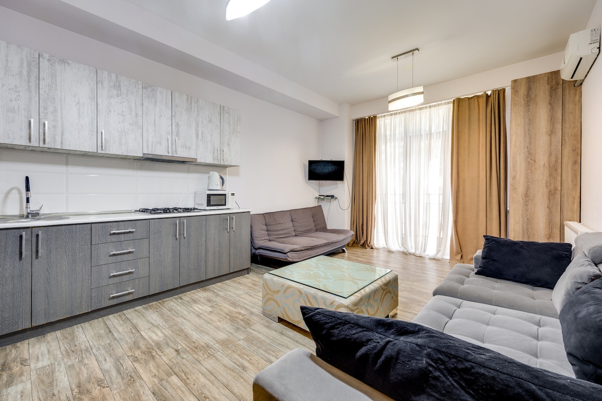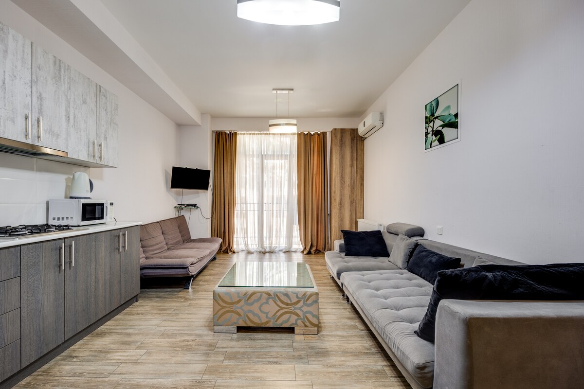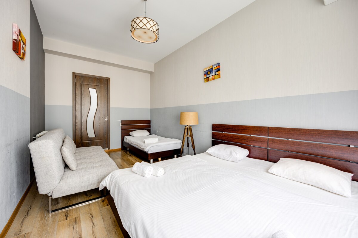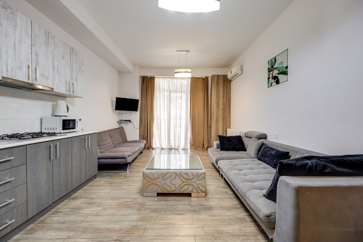 Apartment is located in the heart of the city. Historical places, cafes, bars, museums, theaters and other attractions are all walking distance from the apartment. All the main places, traditional and international kitchens, night clubs, shopping malls are at your service as soon as you step in the street. We are proud to host you in cultural heritage of Tbilisi and make you part of our own history!