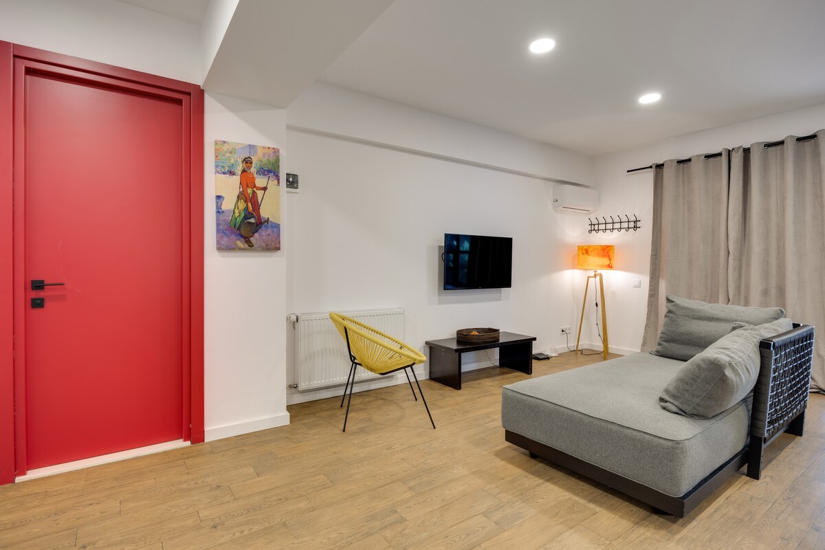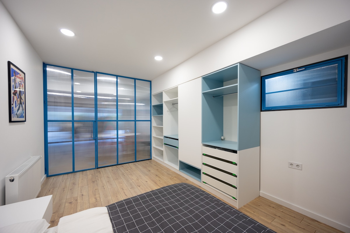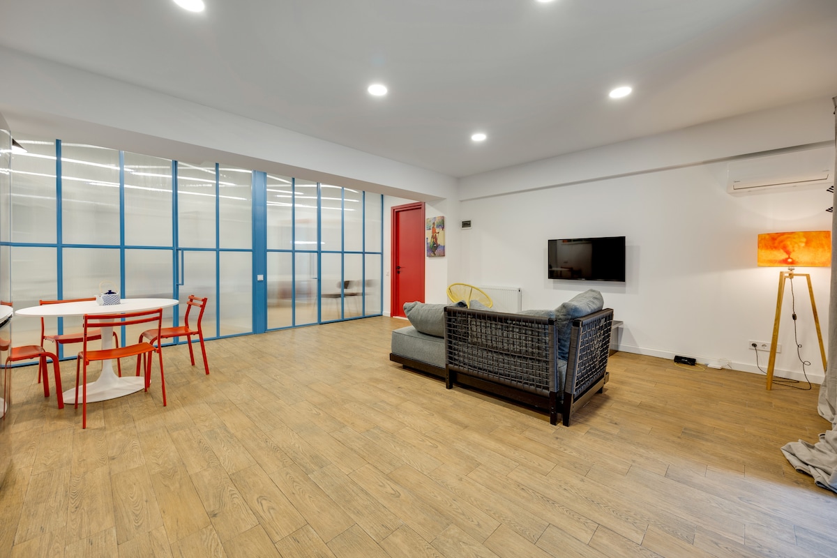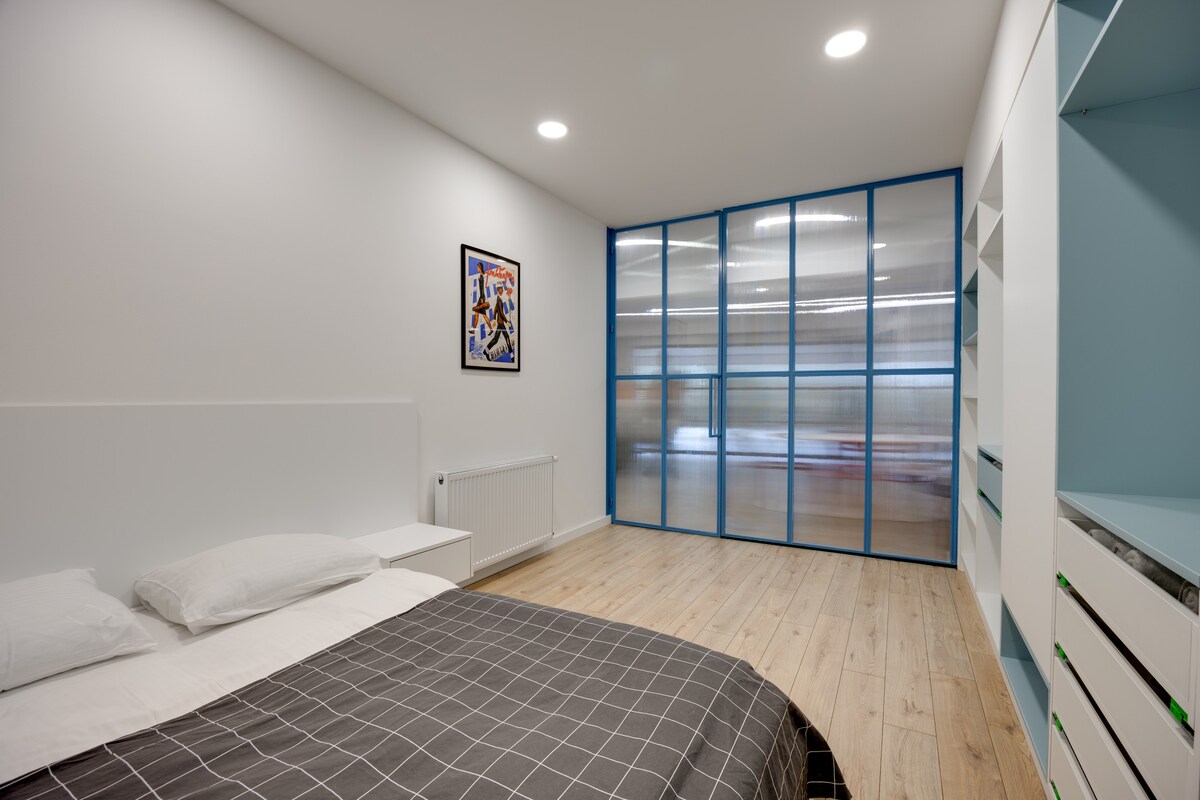 The spaceApartment is equipped with free WiFi, A/C, central heating system, flat-screen TV, washing machine, hairdryer, and all necessary kitchenware.