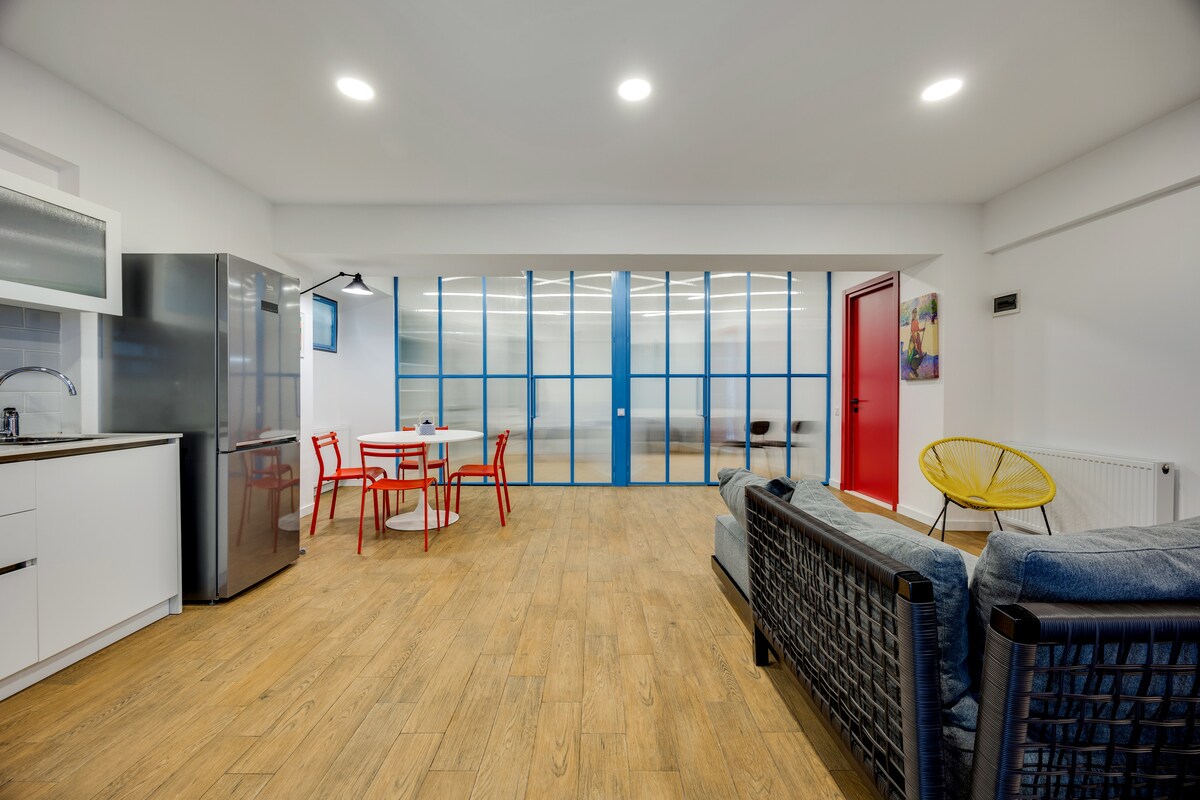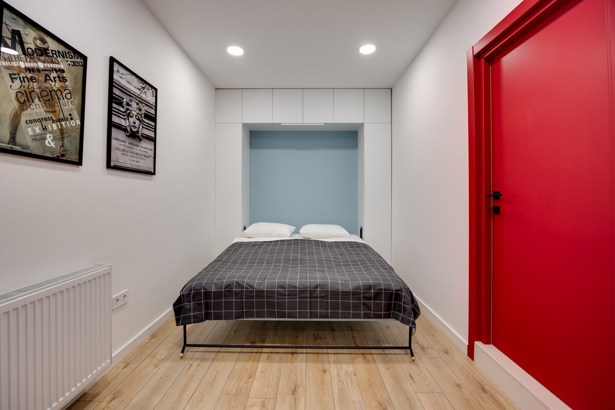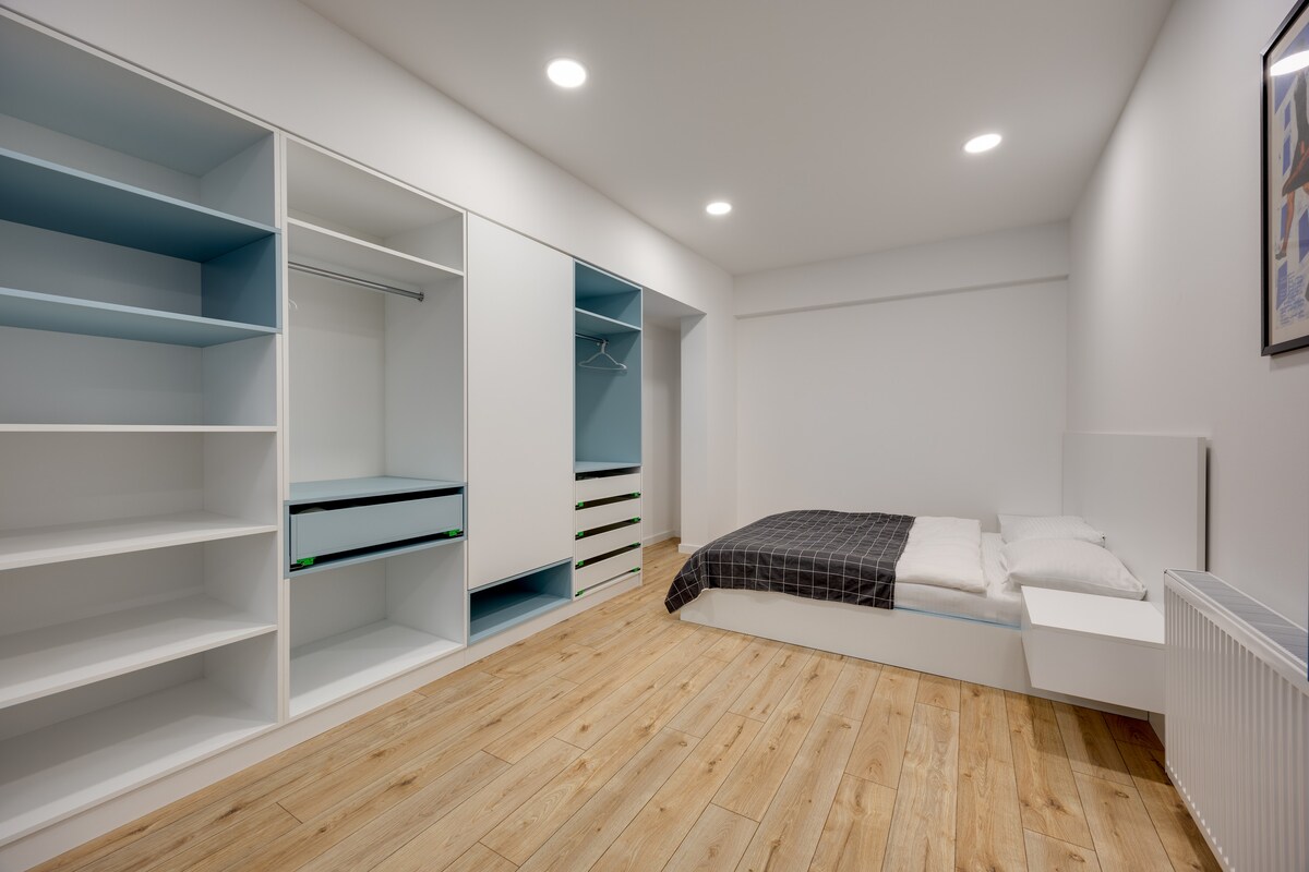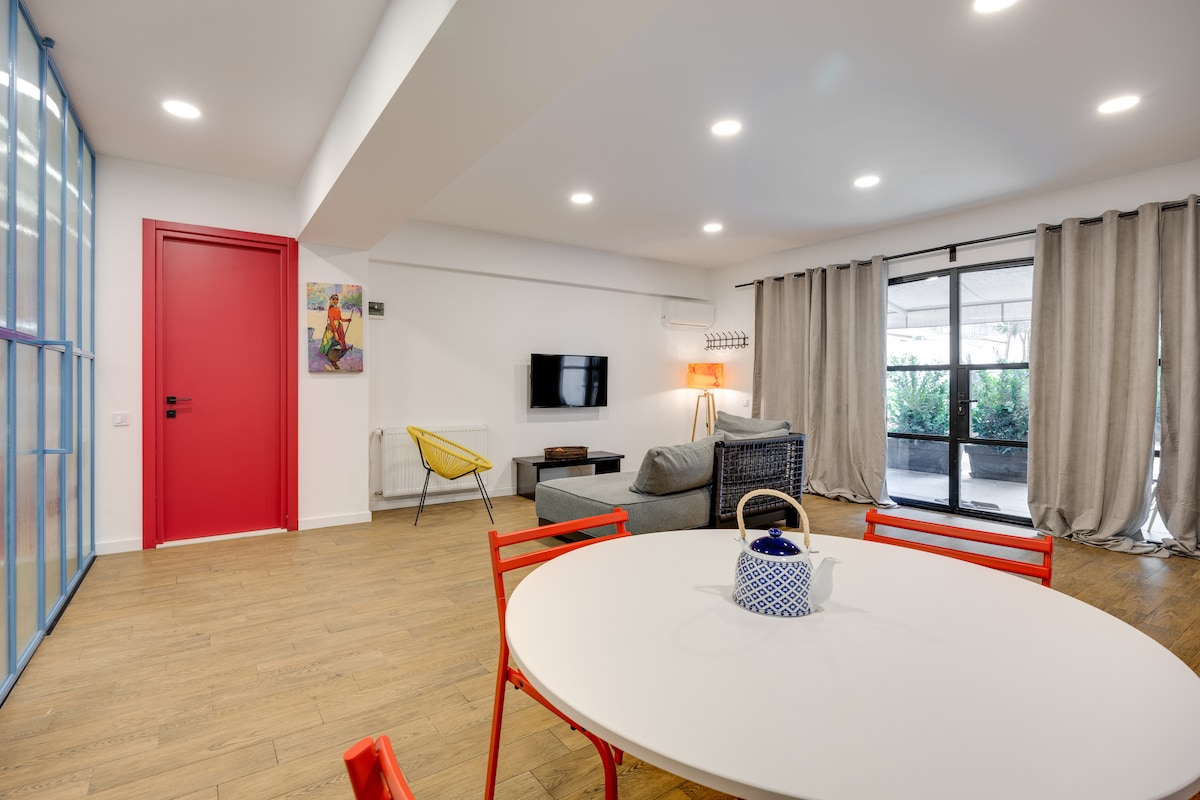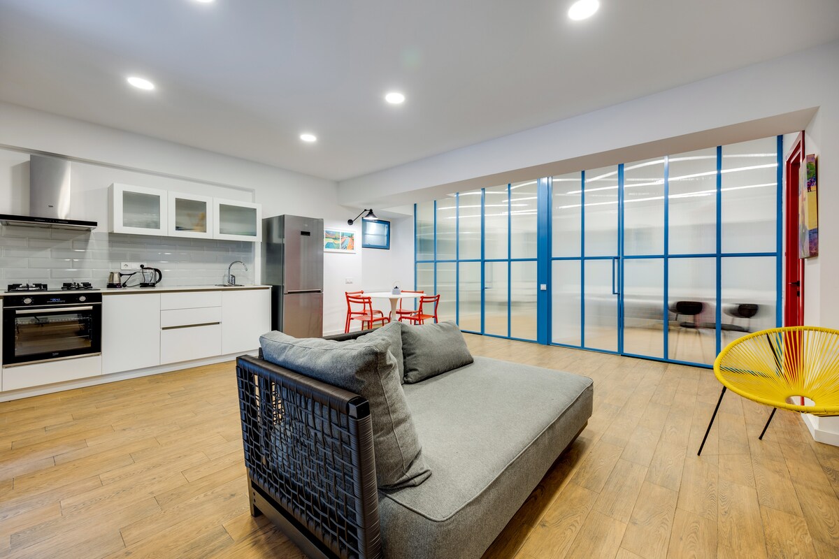 The spaceApartment is equipped with free WiFi, A/C, central heating system, flat-screen TV, washing machine, hairdryer, and all necessary kitchenware.