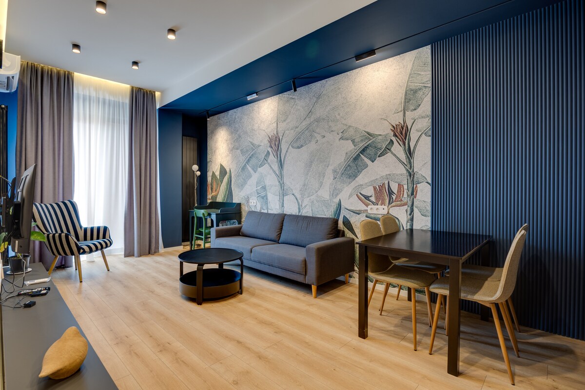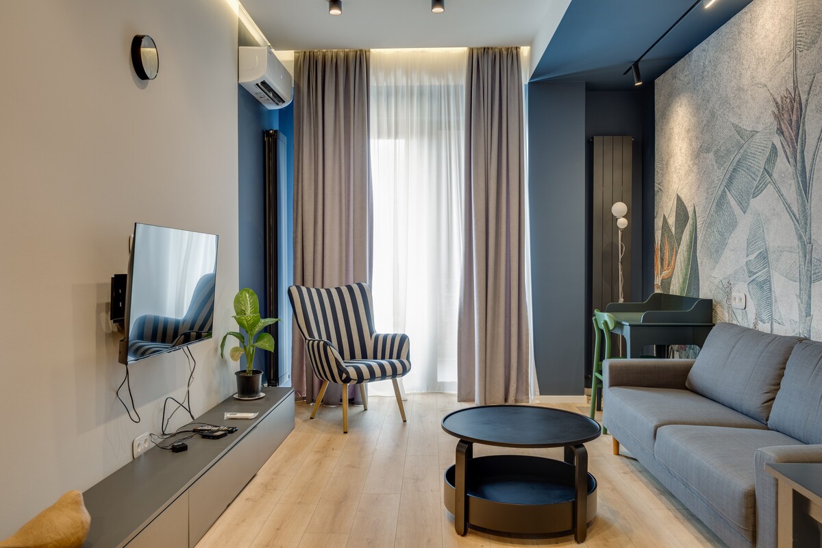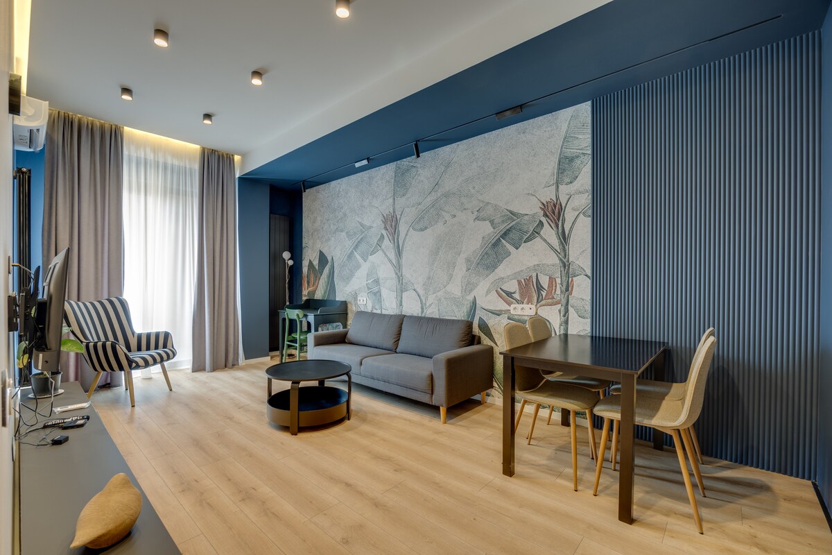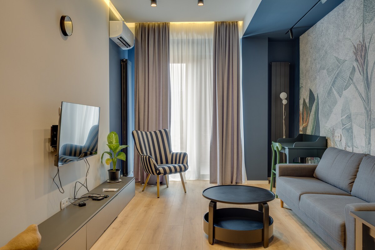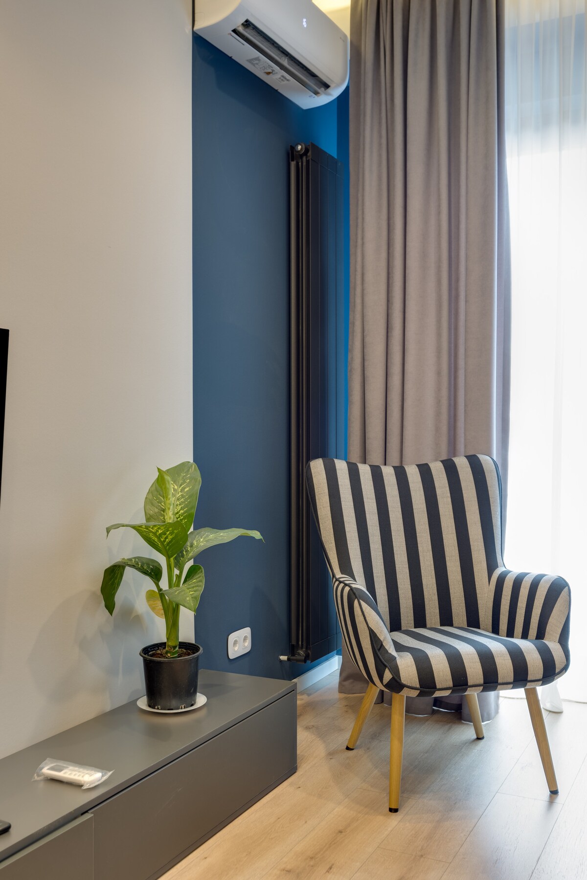 The spaceApartment is equipped with free WiFi, A/C, central heating system, washing machine, hairdryer, stove top and all necessary kitchenware.