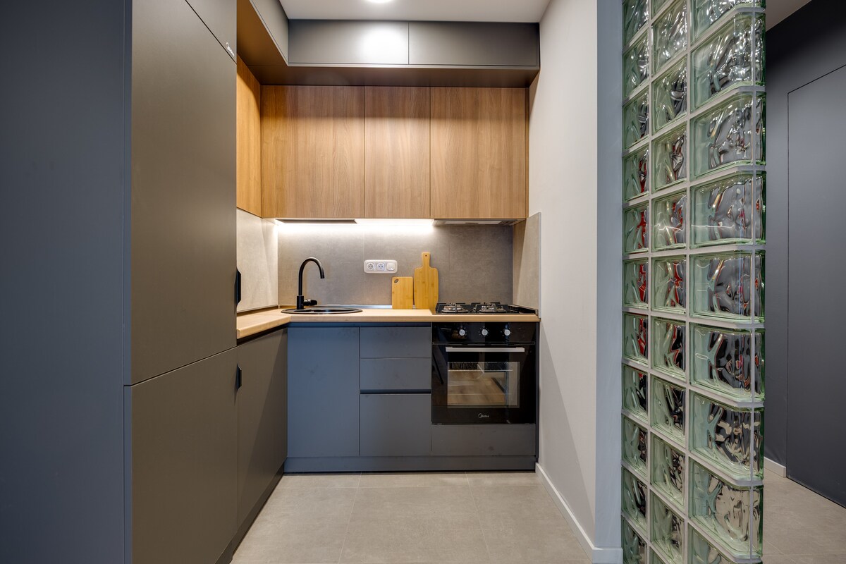 The living space includes 1 bed, 1 bathroom and fully equipped kitchen.