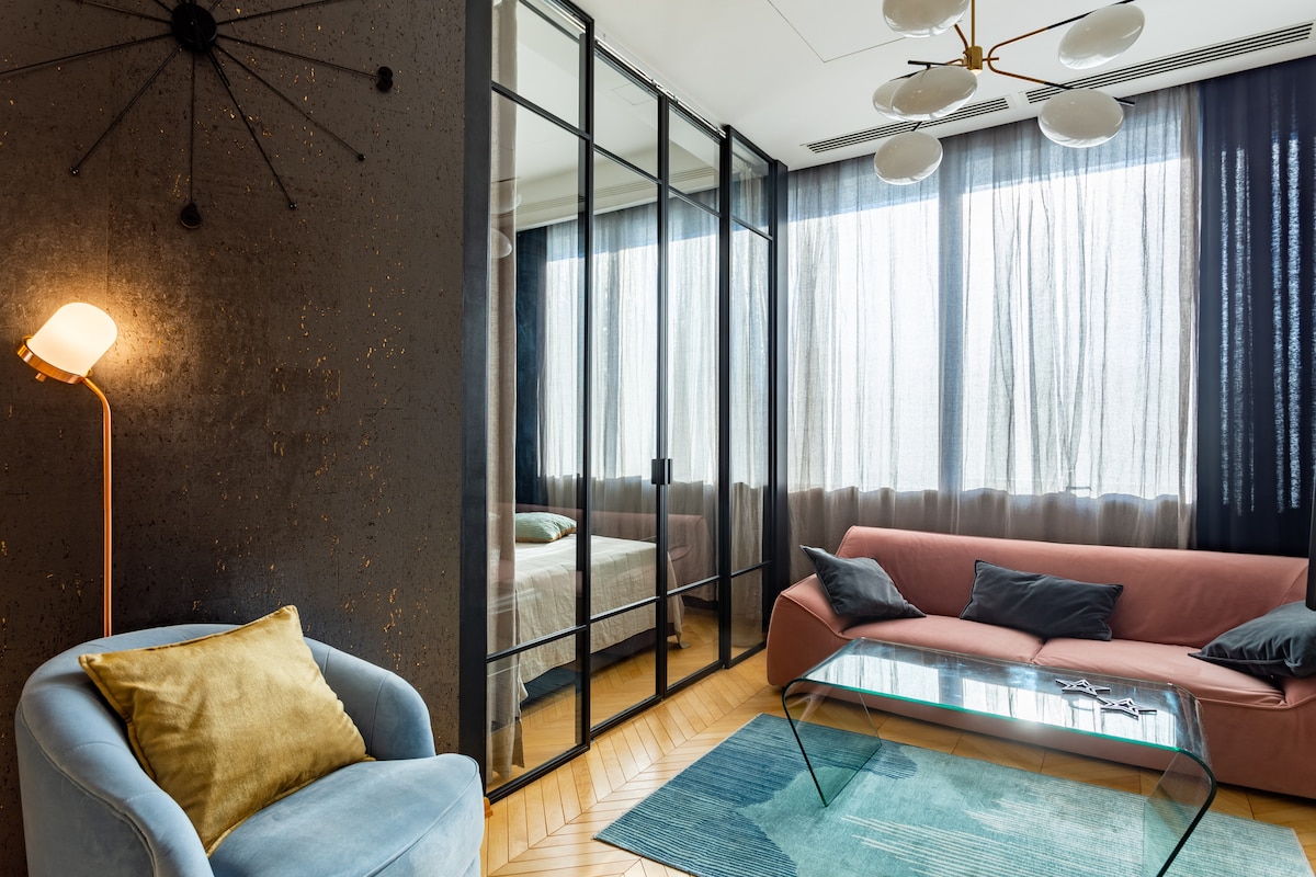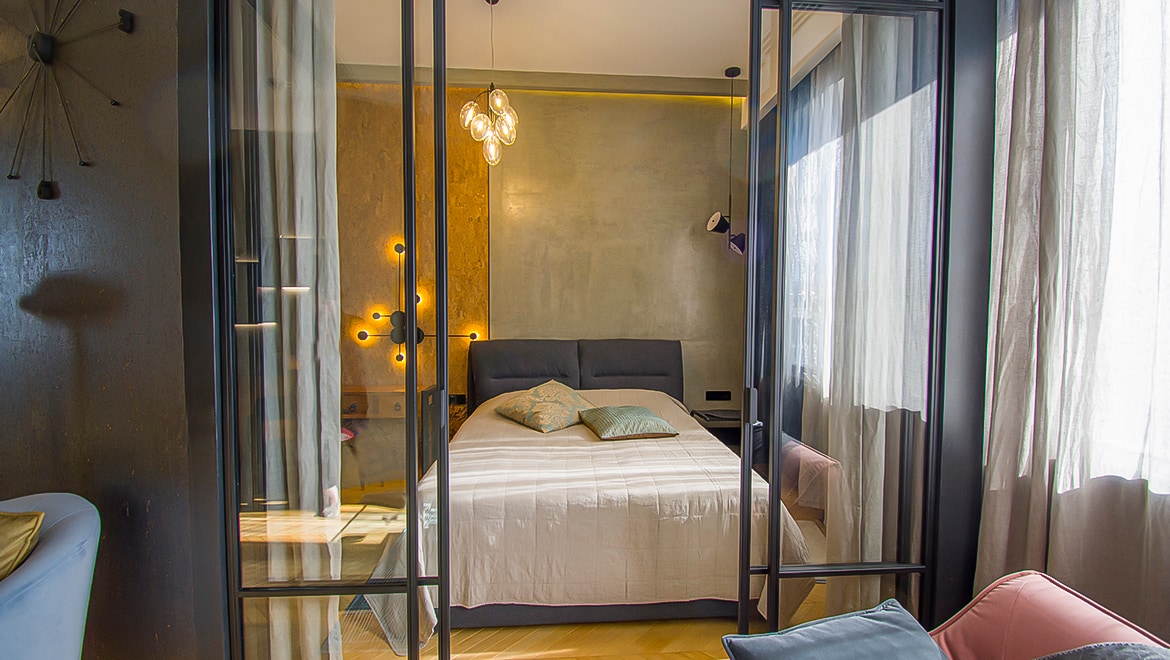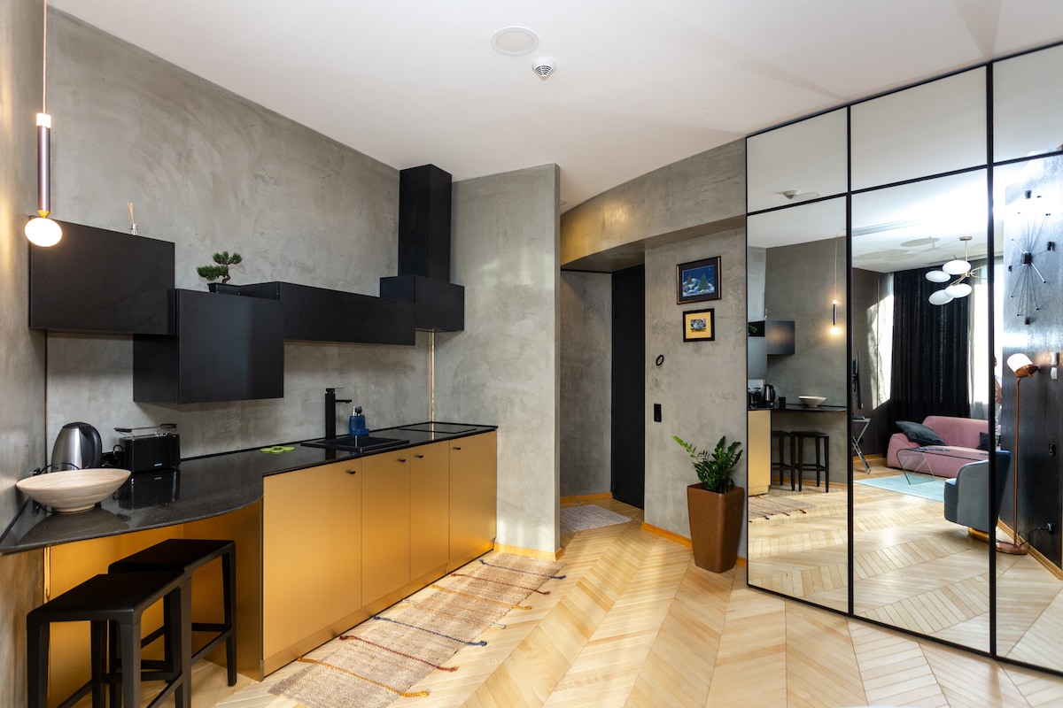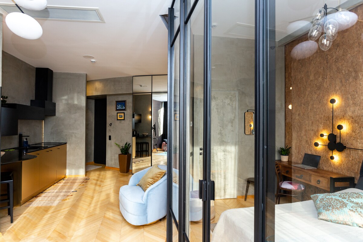 The apartment perfectly fits for business visits. It’s located in the city center close to Axis Business center, where you can find spaces for business meetings. Numerous restaurants and bars are located in this neighborhood.