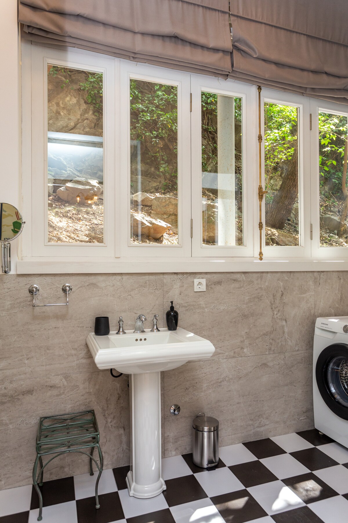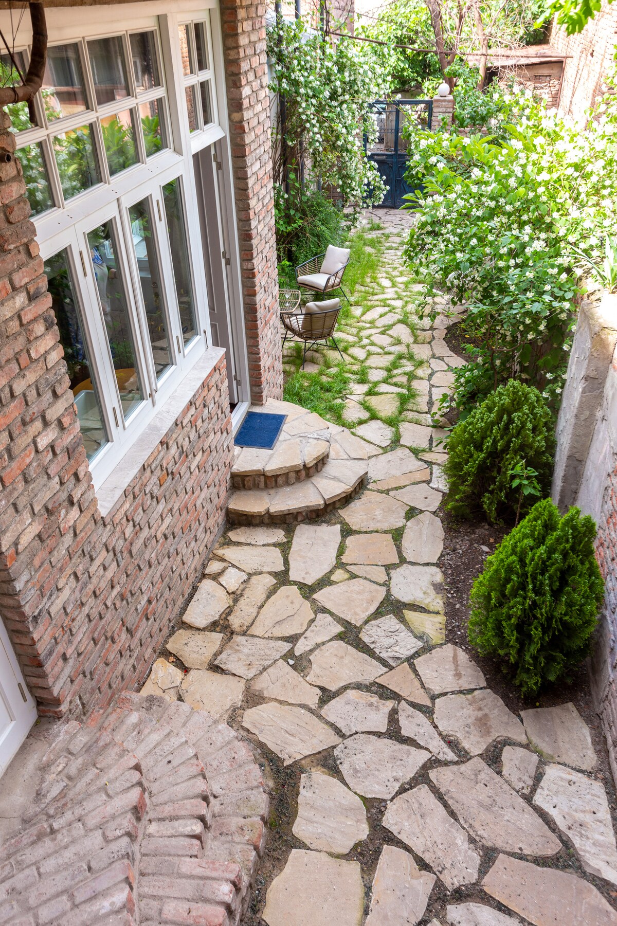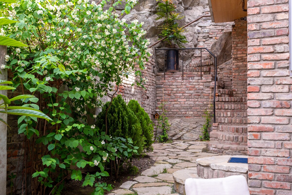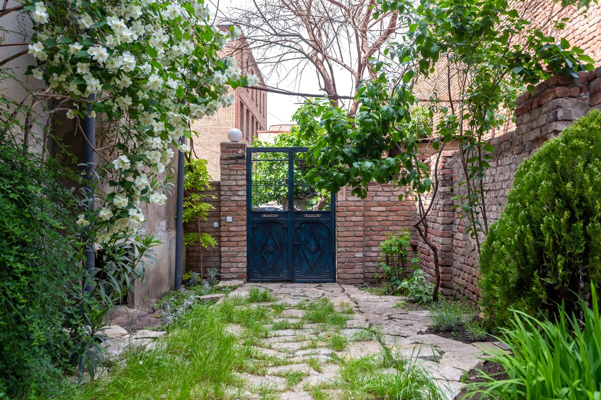 T'bilisiWe believe, you will love our apartment from the moment you enter it. What makes our place distinctive among others is the private yard for the guests. The yard is surrounded with beautiful fence and gives you secure and cozy atmosphere. As you enter the home, prepare to be enchanted by the panoramic views of the courtyard through our large beautiful windows. The apartment is located in the heart of the city, so nearby there are all kinds of cafes, restaurants and touristic attractions.